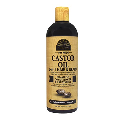 Okay Men's Castor Oil Beard and Hair 3-in-1 shampoo, conditioner, dandruff treatment helps cleanse and condition hair while eliminating dandruff and dry scalp.
