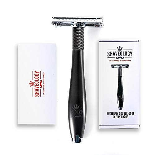Shaveology, double edge razor, is another feature high-quality design that comes in a set comprising of five starter blades, a leather blade guard, as well as a polishing towel. This set is a practical value set that will not require you to pay a high price. The razor is designed to be rust resistant and durable material will establish the highest performance. It provides a clean, safe, and close shave.