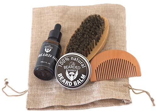The Bearded Barber Beard Essential Beard Grooming Kit includes all the 100% natural products you need to keep that awesome beard, awesome!